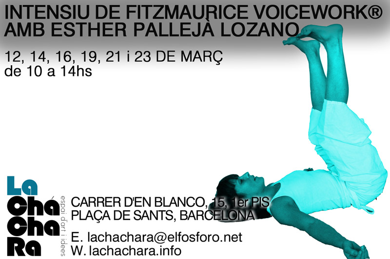 Del 12 al 23 de març, en 6 sessions, els dilluns, dimecres i divendres de 10 a 14, Esther Pallejà Lozano impartirà un intensiu de Fitzmaurice Voicework®